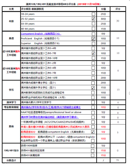 EOI评分标准&移民加分项